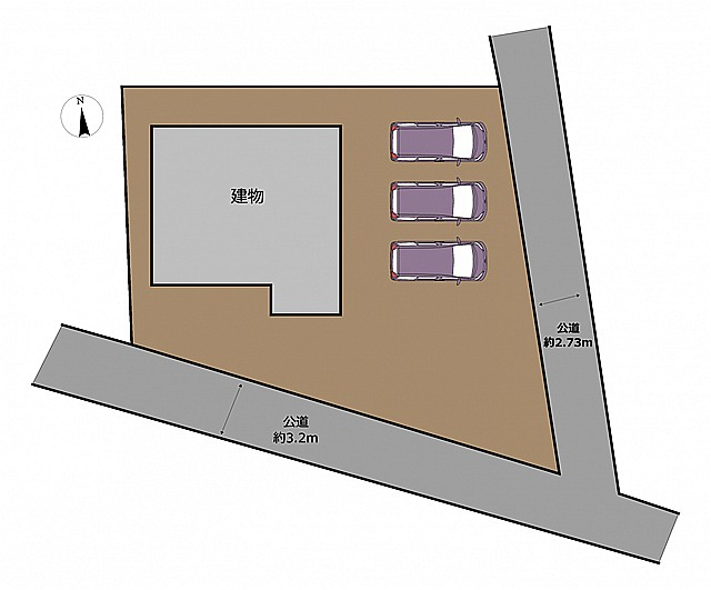 | 接道 | 南東 2.7m(幅員) 公道 南西 3.2m(幅員) 公道 |