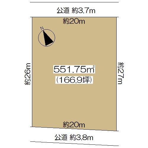 | 接道 | 南 3.8m(幅員) 公道 20m(接面) 北 3.7m(幅員) 公道 20m(接面) |