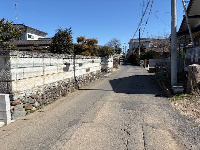 建築条件なし、両面道路、公営水道、公共本下水、側溝、プロパンガス、電気 ※引渡時期:2026年9月上旬 ※セットバック要 ※上物有りの現況渡し(上物①:居宅/木造2階建/119.66㎡、上物②:未登記物置兼車庫/木造平家建/26.49㎡)